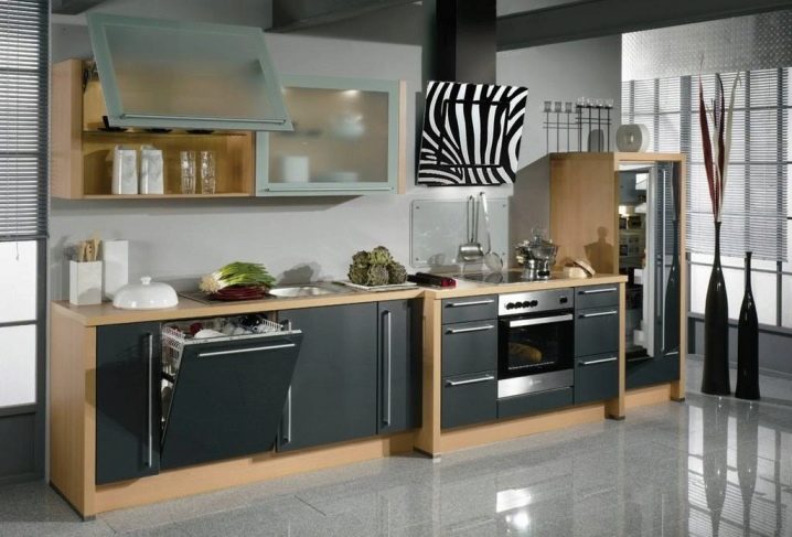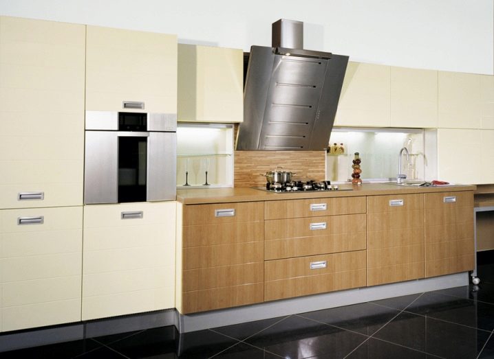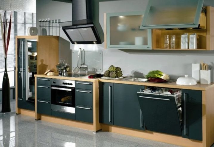 - Вграден мощен модел се различава по практичност и надеждност при работа. Още от името става ясно, че този модел е вграден в кухненски комплект. Следователно такива абсорбатори са доста компактни и леки. Инсталацията не изисква специални знания и умения.
