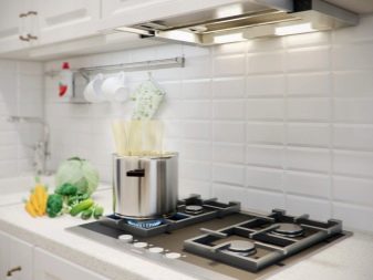 - Купол модел монтиран на стената близо до печката. Тази качулка изглежда много стилна и оригинална..