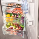 - Количеството храна, поставено в хладилника. Колкото повече килограми храна са поставени на рафтовете на хладилните и фризерните отделения, толкова по -усърдно устройството трябва да генерира студ, което означава, че консумацията на електроенергия се увеличава. Температурата на храната също играе роля;