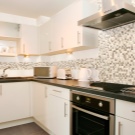 Разбира се, няма да имате толкова богат избор от форми и цветове, но вашата кухня ще бъде добре защитена от различни вредни влияния. Освен това по всяко време можете да добавите декоративни елементи към досадния сюжет, което ще ви помогне добре с керамични плочки или мозайки..