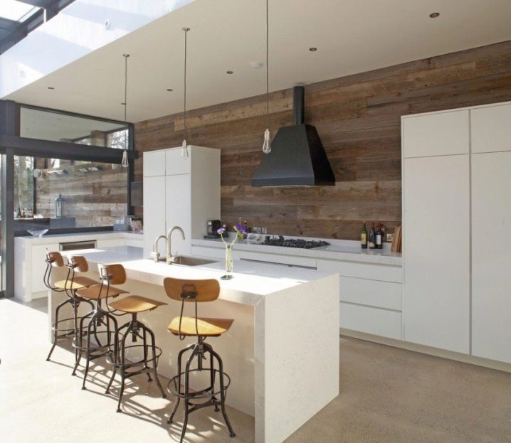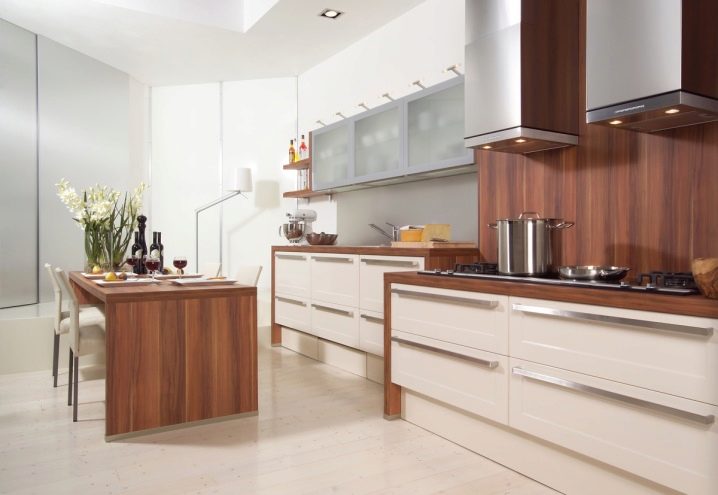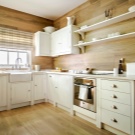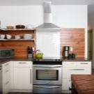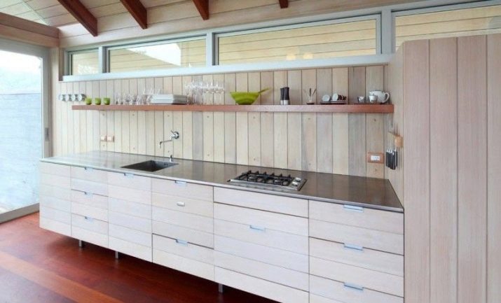 Дървото реагира лошо на открит огън, така че за кухня с газова печка такава престилка определено няма да бъде най -добрият вариант. В допълнение, дървото може да загуби своите свойства и безупречен външен вид, когато е изложено на вода. Разбира се, престилката ви ще бъде обработена с импрегниране и лак, но все пак трябва да сведете до минимум контакта й с вода. Ако най -накрая сте решили престилка и искате тя да е от дърво, тогава можете да я комбинирате. В проблемната зона инсталирайте защитен панел от по -практичен вариант и оставете останалата част под дървеното платно.
