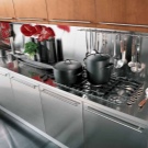 Кухненска престилка от метални материали е най -подходяща за професионални помещения. Но най -често се инсталира в обикновени домашни кухни. Например, поцинкованата стомана има много предимства, така че лесно се използва за монтиране на защитна повърхност. Металната престилка не се страхува от влага, огън или бактерии, може лесно да се почиства и обработва с дезинфектанти.