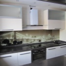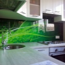Разнообразието от стъклени листове ви позволява да изберете точно опцията, която най -добре се вписва във вашето кухненско пространство. По своята здравина, закаленото стъкло е малко по -ниско от керамичните плочки, то е абсолютно безопасно в случай на случайно разцепване. Стъклен лист от една част е много по-лесен за инсталиране, отколкото всяка плочка поотделно.