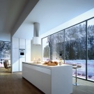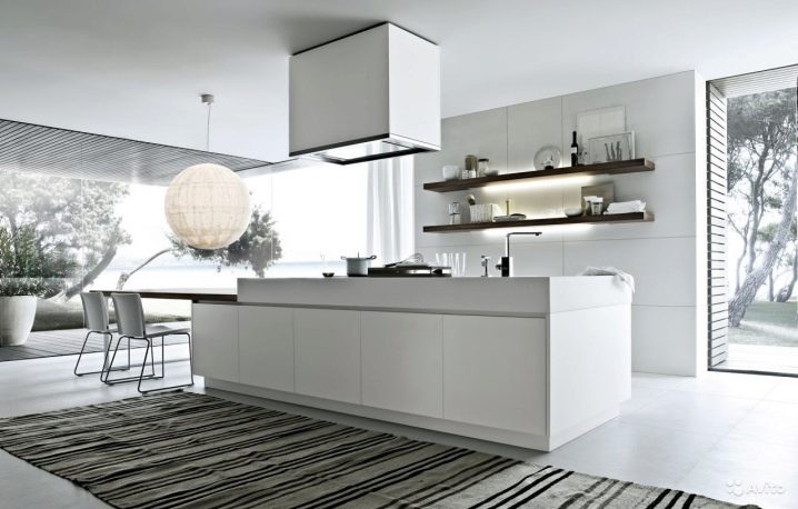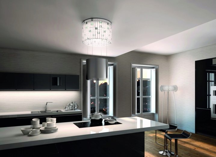 Островна абсорбатор за кухнята е модерно и стилно решение. Неговият необичаен, футуристичен дизайн привлича погледа и се превръща в фокусна точка на работното пространство. По правило островната качулка не се намира близо до стената, а се намира в центъра на кухнята, може да бъде изместена, но винаги изолирана, поради което получи това име. Подобно на други видове абсорбатори, инсталирането му се извършва строго над плота..