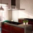 - Основното предимство на островния дизайн е възможността да се монтира навсякъде в кухнята, но над плота.