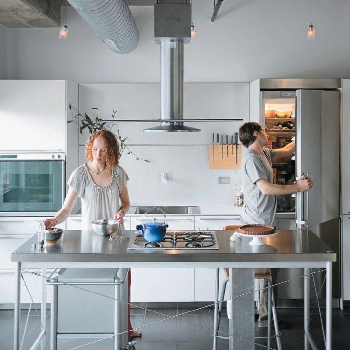 - Качулките на острова са функционални. Те имат допълнителни функции (електронен контрол, управление на мощността, регулиране на височината, таймер, подсветка и много други).