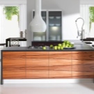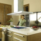 Ако кухнята е просторна и зоната ви позволява да експериментирате, създавайки уникален дизайн, експертите съветват да поставите плота на острова например, тя може да бъде централната част на кухнята. Качулката на остров е модерно и оригинално решение, което ви позволява да преместите зоната за готвене в центъра на стаята. Островните абсорбатори са подходящи за помещения с площ над 20 квадратни метра. Печка, фурна, работна повърхност и мивка се намират на острова. Ако всички основни елементи на работната зона са заедно, е необходимо да се подава вода и канализация отделно..