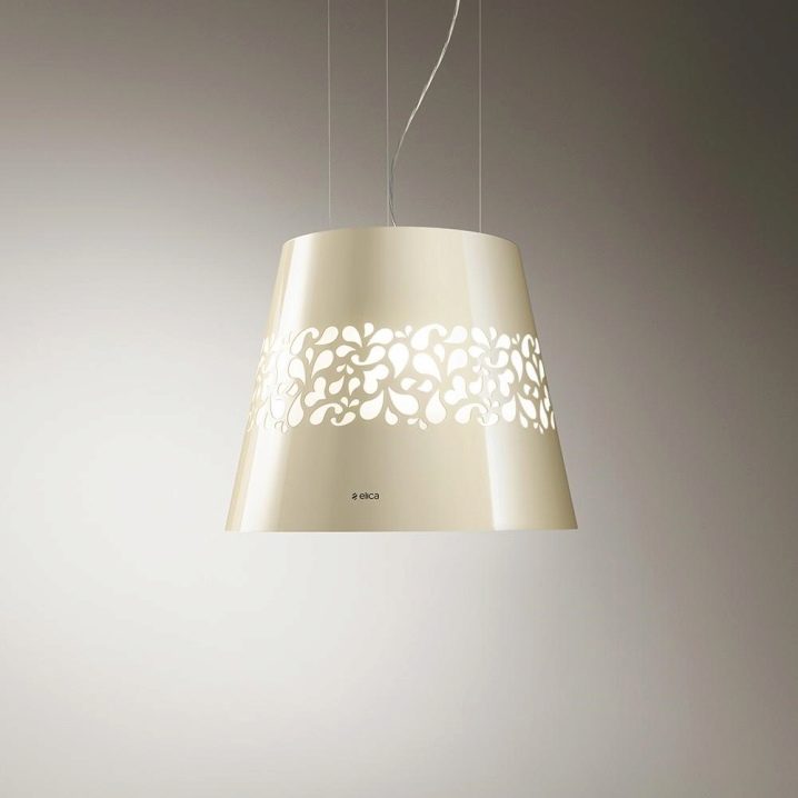 - Elica Gasmine Pearl f / 50. Качулката се отличава със стилен и оригинален дизайн на корпуса, който прилича на пресечен конус. Красива декоративна украса, нанесена отгоре, добавя обрат към модела. Ширината на абсорбатора е петдесет сантиметра, капацитетът е 600 кубически метра / ч, така че моделът се вписва идеално в средно голяма кухня. Моделът има електронно управление, вградени халогенни светлини, три режима на скорост.
