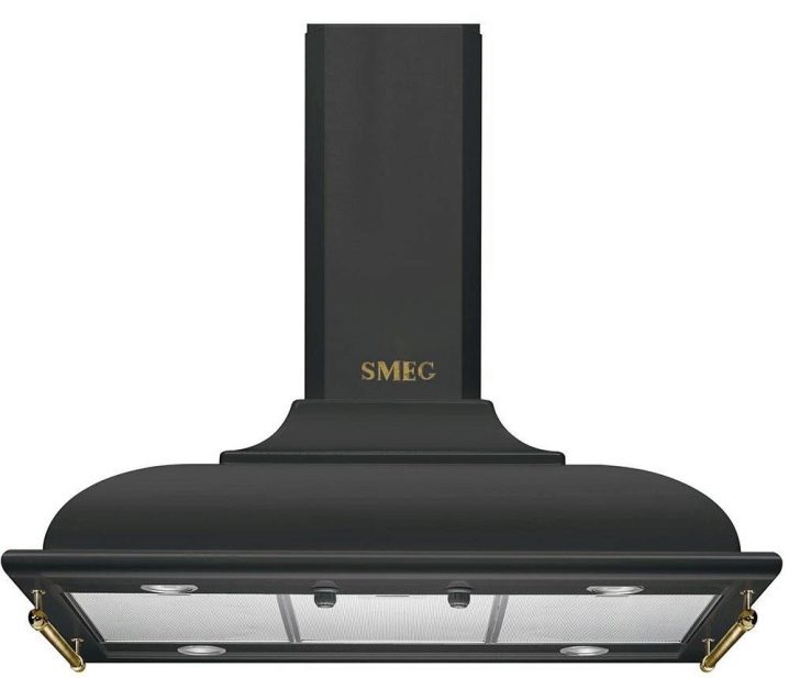 - Smeg. Изисканите и стилни абсорбатори на остров от марката Smeg добавят привлекателност към кухнята и създават модерен акцент. За производството на островни модели производителят използва неръждаема стомана, стъкло, емайл, месинг. Моделът от серията Cortina KCI19AOE има естетически дизайн, изработен от антрацит. Комплектът включва странични релси от месинг, три режима на скорост, три филтъра, производителност 754 куб. М / ч.