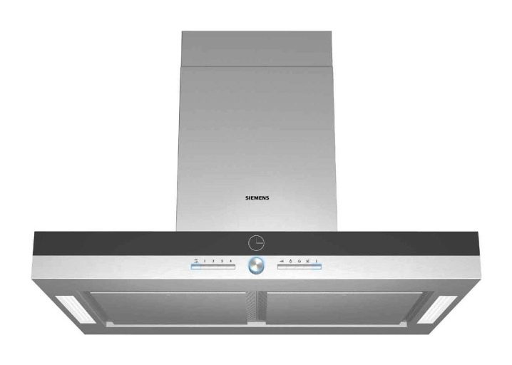 - Siemens LG 95950. Островна качулка с минималистичен външен вид, строг и лаконичен дизайн. Състои се от прави, ясни линии и прости форми. Чудесно за високотехнологични интериори. Моделът е изработен от здрава неръждаема стомана. Високата му производителност е достатъчна за почистване на големи помещения (800 кубически метра / м). Качулката на тази марка може да се отклонява и рециркулира. Предимството на дизайна е, че той е снабден с халогенна подсветка и има четири режима на работа..