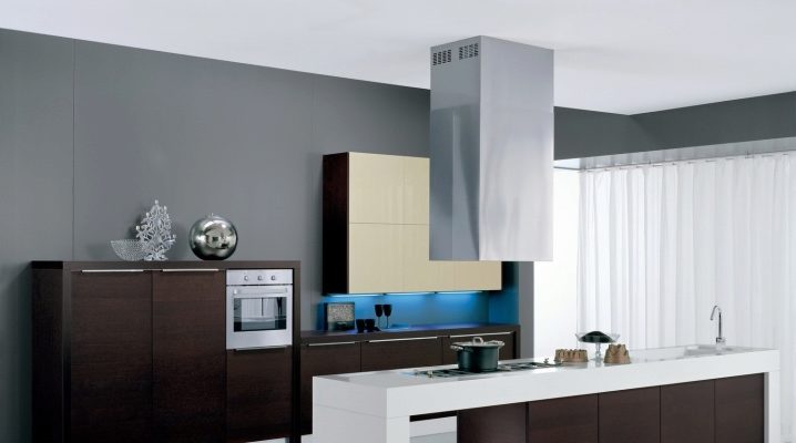 Красива модерна абсорбатор в кухнята изглежда стилно и е мебел. Островният модел се различава от обичайния по това, че съчетава различни стилове и посоки, материали и форми. Тя може да бъде кръгла, овална и да наподобява футуристични елементи. Популярните производители правят всичко възможно да заинтересуват купувача с интересна и необичайна новост..