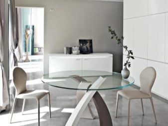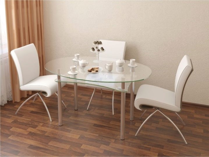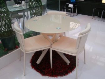Групи кухненски мебели от стъкло ще ви позволят да създадете кът за обедна почивка в условията дори на малка кухня: поставете мебелни елементи далеч от зоната за готвене или в обратна посока от нея.