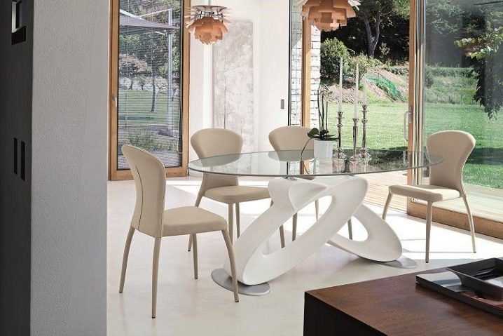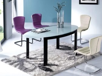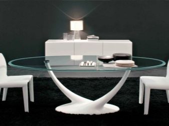 - Свръхмодерните материали ви позволяват да създавате оригинални решения за овална маса и да ги използвате в минималистичен или футуристичен интериор.