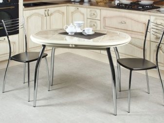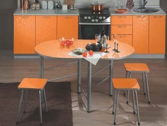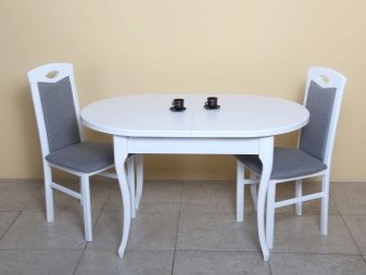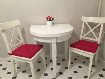 - За малка кухня ще бъде подходяща полуовална странична маса, която е инсталирана близо до стената и поставя до 3-4 души около нея.