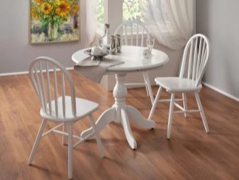 - Бялата кръгла маса на единия крак се различава по форма и материали: масивен дървен прототип върху дебела опора с издълбани елементи е подходящ за завършване на класически или селски (кънтри, Прованс) кухненски образ. Работен плот върху елегантна метална опора ще бъде практичен избор за стилен и модерен интериор на кухня или трапезария (модерен, хай-тек, минимализъм).