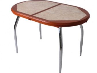 - Овалният плот за маса с керамични плочки ще бъде подходящ не само за ядене, но и за готвене: трайните елементи на декора не се поддават на механични повреди. Дизайнерите препоръчват комбинирането на плочките в плота със строг или класически интериор, в който доминират естествените нюанси на дървото и структурата на естествено масивно дърво..