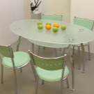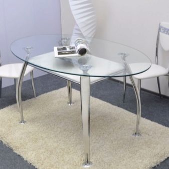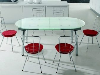 Често собствениците, които обичат редовно да актуализират образа на кухненското пространство, започват да въвеждат нещо ново. Овалните стъклени маси са най -подходящите за освежаване на кухнята и зарадват домакинята с нова мебел на нейната територия..