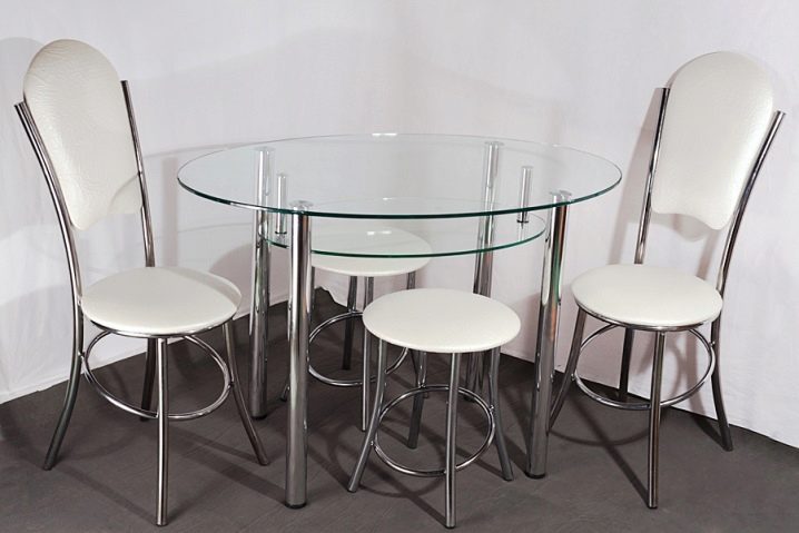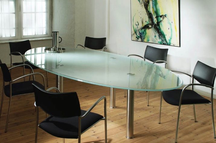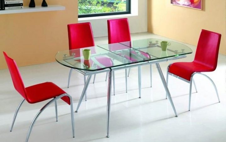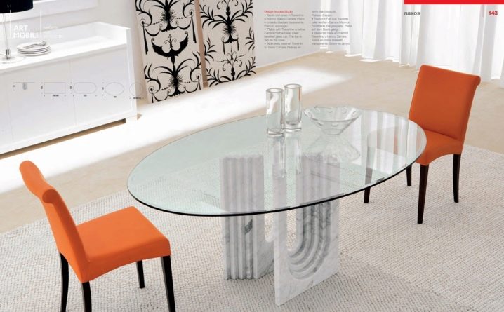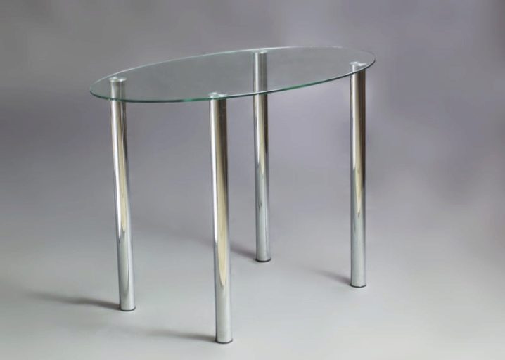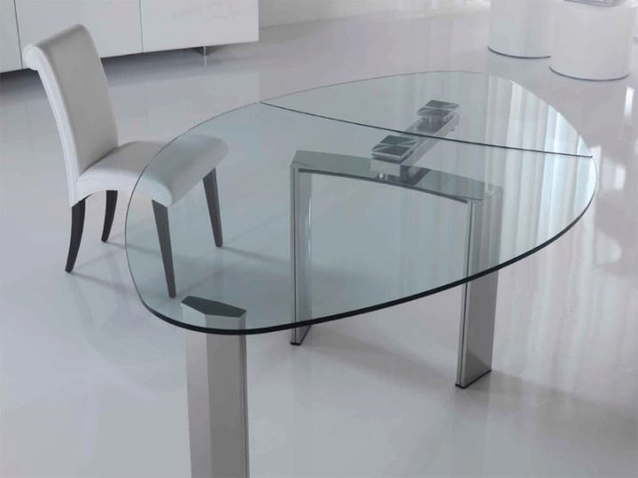 Тази мебел изглежда много оригинална в интериора и забележимо я променя към по -добро, стаята визуално изглежда по -голяма и по -лека. Стъклената повърхност е перфектно съчетана с всеки дизайн и обзавеждане, а също така отговаря на абсолютно всички допълнителни материали, от които могат да бъдат направени краката на продукта. Преди да завърши мебелите, стъклото е специално закалено, което му придава допълнителна здравина и подобрява качеството на повърхността. Можете спокойно да поставите гореща тенджера или тиган на повърхността на кухненската маса без опора и това действие няма да причини никакви щети. В допълнение, стъклото е устойчиво на мазнини, влага и боя.