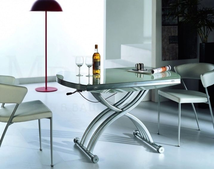 Моделът на трансформатора е невероятно практичен и функционален. Благодарение на различната височина на краката и способността да се раздалечават, създавайки допълнително пространство, те могат да се превърнат в уникална мебел в малък апартамент. Тя може да се превърне както в голяма маса за хранене, така и в малка масичка за игри за игри с карти или просто седнала пред телевизора. От овална трансформаторна маса със стъклена повърхност можете да направите стойка за телевизор, а когато дойдат гостите, я извадете и я разбутайте на необходимия размер.