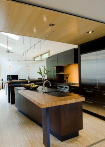 Ако предпочитате минимализъм или хай-тек стил, тогава трябва да разгледате по-отблизо тавана в кухнята, изработен от алуминиеви панели..