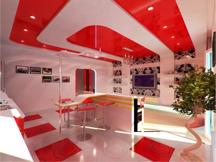 Ако вашата кухня е направена в екстравагантен и необикновен стил, трябва да разгледате по -отблизо пластмасовите панели на тавана, които имитират кожа..