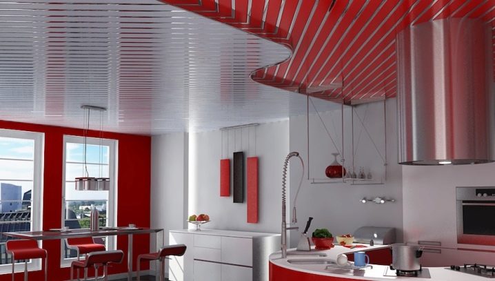Таваните за кухнята, изработени от алуминиеви панели, са разделени на няколко вида: