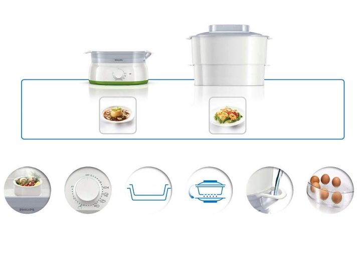 Тези продукти на марката Philips са добри по свой собствен начин. На първо място, не е нужно да се занимавате със сложни режими и куп неразбираеми бутони. Можете просто да настроите времето за готвене на таймера и да не мислите за нищо друго – в подходящия момент параходът ще ви уведоми, че храната е готова.