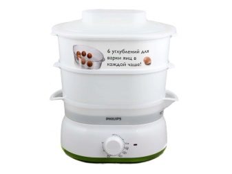 Параходът се доставя с купа, разположена в една от кошниците. В тази купа можете да сварите ориз. И още един атрибут на парахода е държачите за шест яйца..