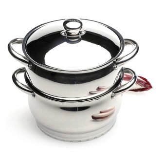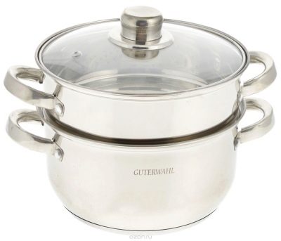 - Guterwahl е един от най -универсалните параходи. Идеален за използване не само на газови и индукционни печки, но и на халогенни и електрически готварски печки. Капацитет около четири литра. Капакът е стъклен, а самият тиган е от неръждаема стомана. Подходящ за съдомиялна машина.