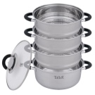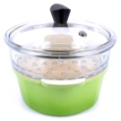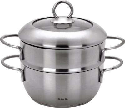 - Парна пара Марта идеален не само за газови печки, но и за индукционни и стъклокерамични. Дръжките са надеждно защитени от топлина. Самото устройство има две нива и се предлага със стъклен капак.