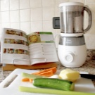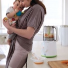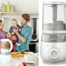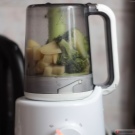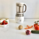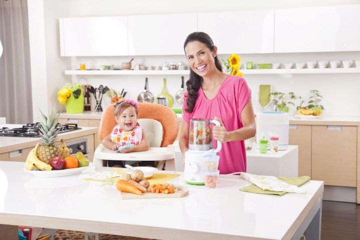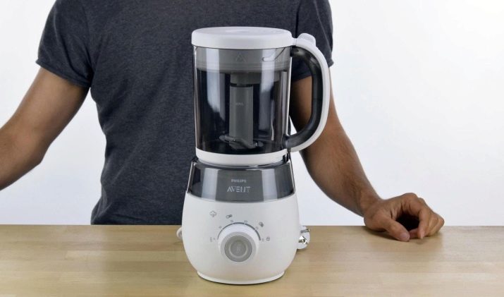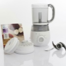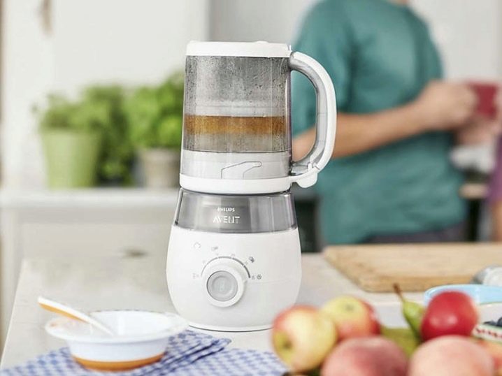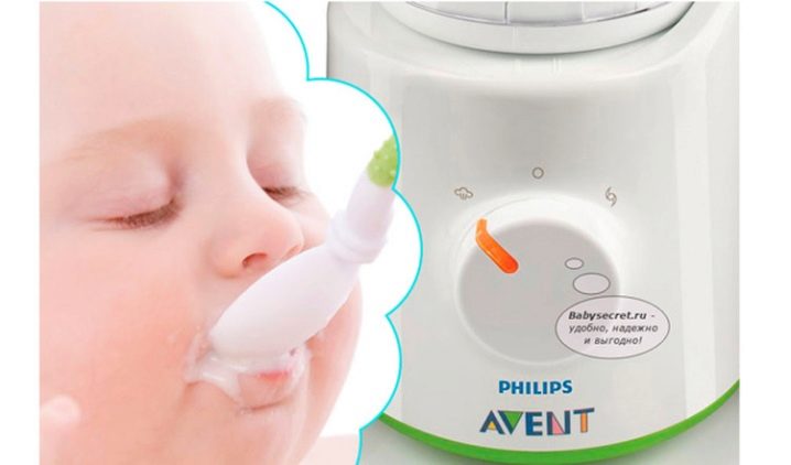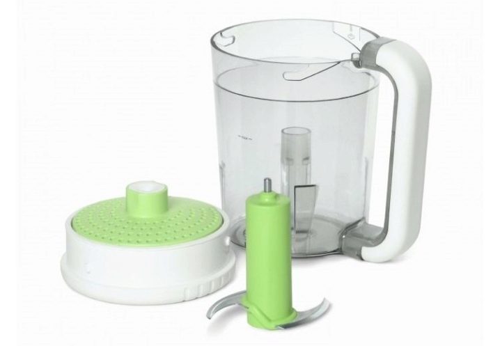 - влакове – благодарение на специалния монтаж, продуктите в контейнера са термично обработени с пара, запазвайки максимално витамини и минерали. Устройството има добра мощност, което ви позволява да смесвате голямо разнообразие от съставки: месо, зеленчуци, плодове, зърнени храни и други, по -твърди храни. Устройството може да приготвя ястия за бебето на всеки етап от допълнителното хранене;