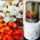 Активирането на работата на пароварка-блендер в едно устройство е много просто: необходимото количество вода се излива в специален контейнер, а обработените или сурови компоненти на съда се поставят в самата купа. Предварителните продукти могат да бъдат нарязани на кубчета, с размер два до три сантиметра. След това можете да включите устройството.