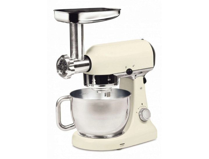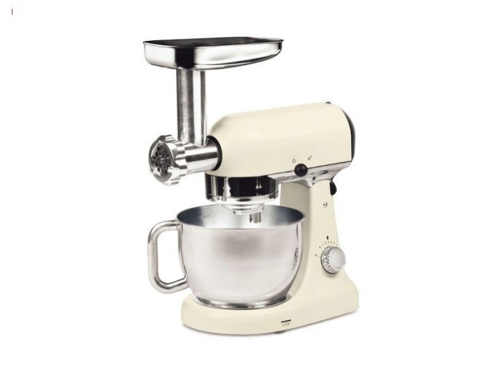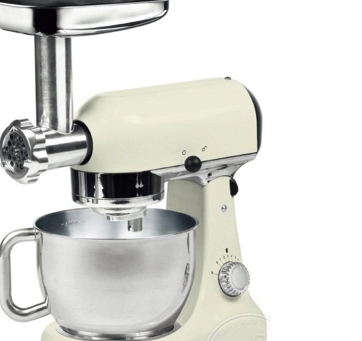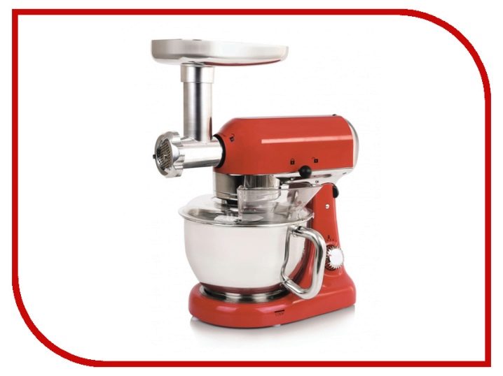 В допълнение към основните приставки от неръждаема стомана, миксерът е оборудван с месомелачка за смилане на месо.