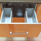 Такава кофа изглежда много добре, на пръв поглед дори ще бъде трудно да се каже, че това е контейнер за боклук. Такава кофа е много лесна за изваждане от конструкцията на шкафа и подмяна. Този продукт улеснява живота и изобщо не е проблем.