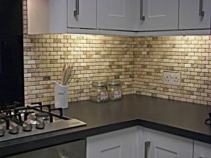 - Мозаечна плочка. Малки пъстри плочки, които могат да бъдат много красиви за поставяне на престилка или плот;