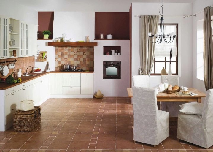 - Клинкерни плочки. Подобна на порцеланови каменни изделия, но още по -издръжлива. Идеален за полагане върху кухненския под;