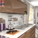 - Съвсем очевидно е, че плочките както по пода, така и по стените трябва да са в хармония с кухненските мебели и общата цветова схема на стаята. Можете да използвате три цвята едновременно, но не повече;