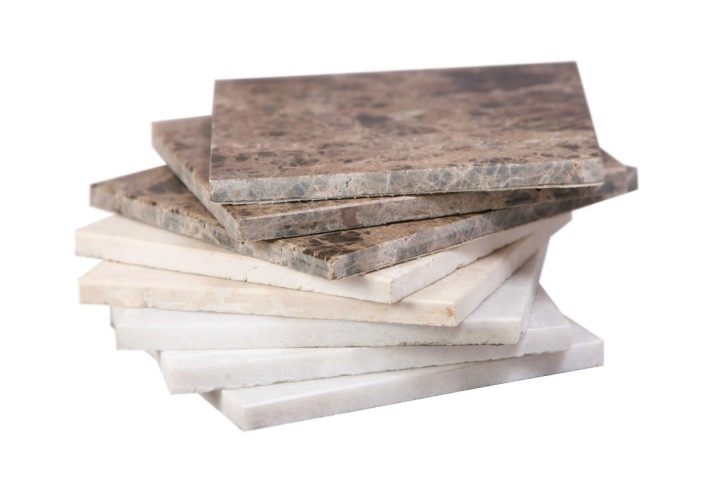 - Порцеланови каменни изделия. Широкоформатни плочки с повишена устойчивост на замърсявания. Предлага се също в матов и гланц. Подходящ за поставяне на престилка, плот за маса, под;