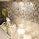 - Мозаечна плочка се състои от голям брой съставни елементи, които са с размер не повече от 5 сантиметра. Основното предимство на този материал е, че може да се използва за създаване на най -неочаквани рисунки и композиции, които ще изглеждат много оживени и ефектни. Изборът на мозаечни цветове е почти неограничен. Този вид покритие е устойчиво на външни влияния: и не се влошава под въздействието на почистващи химикали и влага. Обикновено мозайката се използва като декорация на стени.
