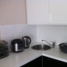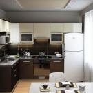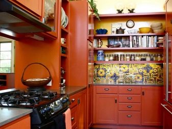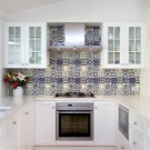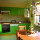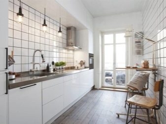 Също така, когато декорирате кухня, не трябва да използвате повече от три основни цвята. Ако искате да разширите визуално пространството, тогава трябва да използвате светли плочки за облицовка на стени. В допълнение към цвета, трябва да се вземе предвид и размерът на покритието: големите плочки визуално намаляват стаята, а малките се разширяват.