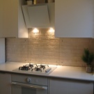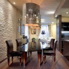 - Гипсови плочки – ефективно, но не и практично. Мръсотията се натрупва в релефната повърхност и шевовете, което е много трудно да се измие. Гипсовите плочки са подходящи за довършване на трапезарията. Можете също така да украсите престилка с този материал, но плочките трябва да бъдат покрити с декоративен лак..