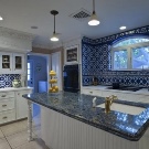 - Порцеланови каменни изделия – най -здравият и издръжлив вид плочки. Този материал, за разлика от керамичните плочки, не избледнява с времето, е по -малко податлив на вредното въздействие на влагата и е устойчив на механични повреди. Но този материал е доста труден за боравене и изрязване, а понякога и подреждане, тъй като е доста тежък. Порцелановият камък работи добре както за гръбната повърхност и плота, така и за пода. Основните недостатъци на керамичните плочки от порцелан са крехкост по време на транспортиране, висока цена, малък асортимент.
