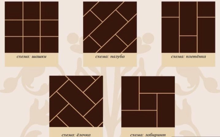 - Палуба – метод, имитиращ тухлена зидария. В съответствие с това плочите трябва да се поставят в диагонални редове, но с леко отместване. В този случай изместването трябва да бъде същото по цялата повърхност на пода. За този метод на монтаж са подходящи тесни и дълги плочки, както и “свиня”.