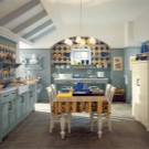 Керамичните плочки за декорация на кухня се избират въз основа на основната дизайнерска идея и цветова схема, в съответствие с която стаята е декорирана. Цветът му трябва да е в хармония със стените, тавана, кухненските елементи и мебелите.. И е много желателно кухнята да съдържа декоративни елементи, които отекват в цвят с плочките..
