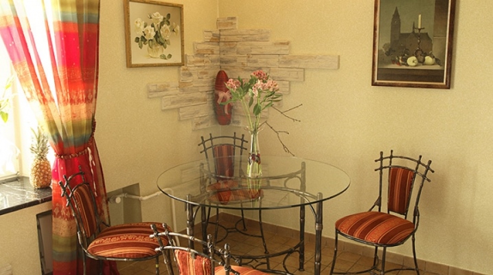 Що се отнася до дизайна, металната рамка не трябва да се представя като гладка, плътна цветна тръба. Има интересни дизайнерски модели с оригинални извити крака. Такава маса вече ще се превърне не само във функционално допълнение към кухненското пространство, но и в нейната пълна декорация..