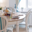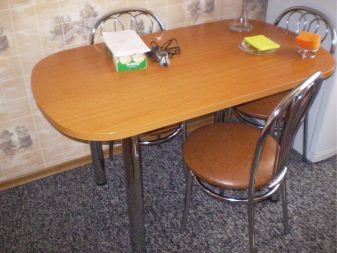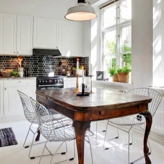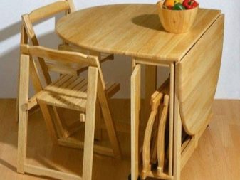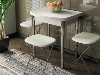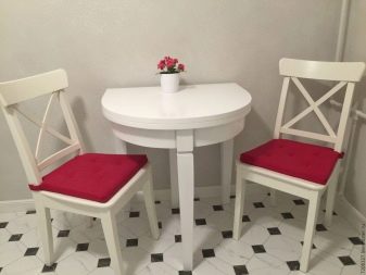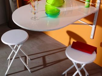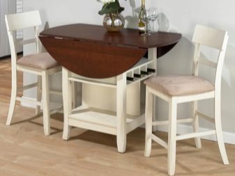 Това решение ви позволява не само да получите оригинална мебел, но и значително да спестите място. В края на храненето столовете могат да бъдат напълно прибрани и самият той се превръща в работна повърхност, на която можете удобно да поставите необходимите кухненски прибори и дори да ги използвате като работна повърхност.