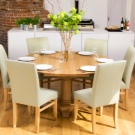 Вероятно най -популярният модел на маса за хранене и до днес е сгъваема маса. Практичността му е доказана от времето и от няколко наши поколения. Това беше такава маса, която някога е била мечта за нашите майки и баби, поради своята практичност и удобство. Разбира се, какво може да бъде по-добре от малка маса, на която семейството вечеря всяка вечер и, ако е необходимо, може да се превърне в пълноценна маса за хранене за семеен празник.