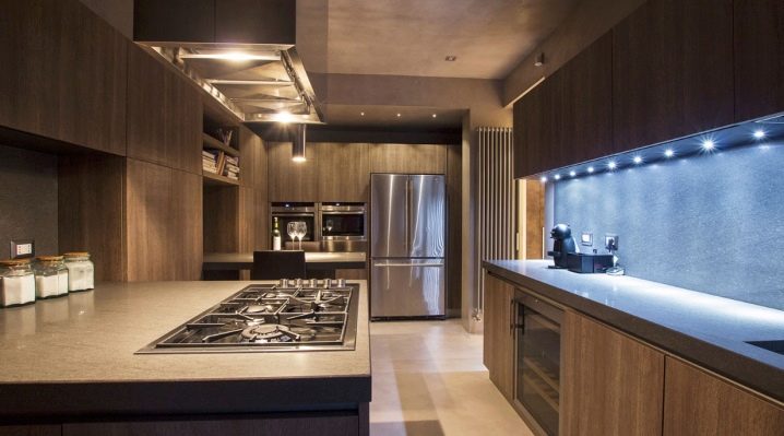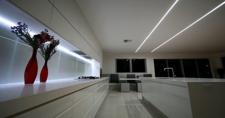 Почти всяка домакиня е изправена пред факта, че за удобна работа в кухнята не е достатъчна само естествена светлина или само осветление. Това е особено вярно през зимата, когато се стъмни рано и в малка кухня, затрупана със стенни шкафове, почти нищо не се вижда. Неудобно е да се монтират допълнителни настолни лампи на такива места, а окачените LED лампи се превръщат в спестяващ изход от ситуацията..