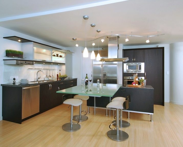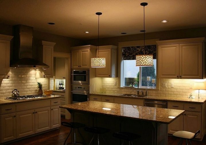 Изборът на местоположението на лампите зависи от характеристиките на всяка отделна кухня и от въображението на дизайнера или самата домакиня..