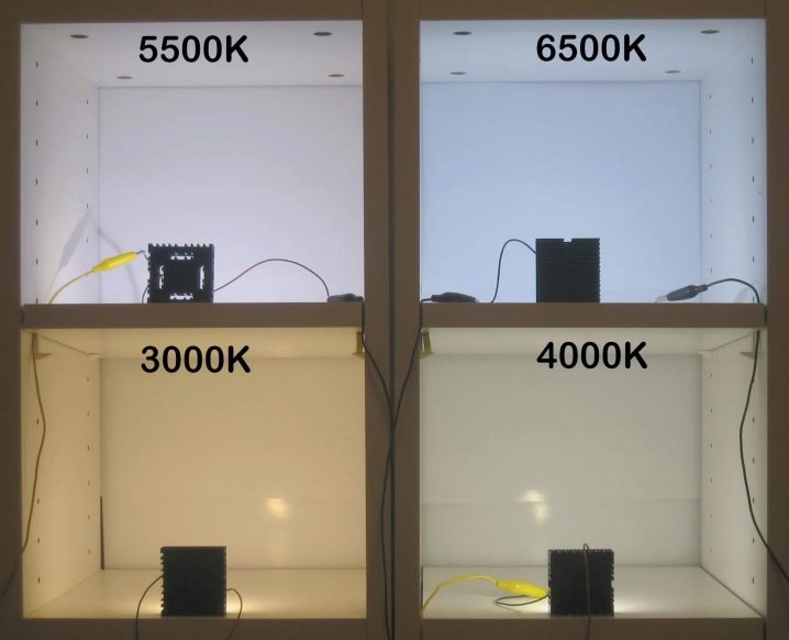 - Устройства за неутрална светлина. Спектърът на излъчване варира от 3500K до 4200K. Такова осветление обикновено се използва в офис сгради или други обществени съоръжения – болници, търговски центрове, административни сгради..